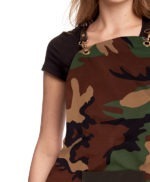 Designerski fartuch w stylu militarnym. Wykonany z wysokiej jakości materiałów. Dopracowane detale. Dwie kieszenie w kolorze zielonym.